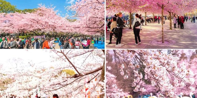 Hoa anh đào tại Nhật thường nở đồng loạt, phủ kín dày đặc hồ hết ở các công viên, lâu đài, ven các bờ sông và khu phố cổ, tạo nên không gian mùa xuân ngập sắc hồng lãng mạn, khiến cả quốc gia như được khoác lên mình tấm áo hoa mềm mại và đầy cuốn hút. Bên cạnh việc chiêm ngưỡng cảnh sắc rực rỡ, du khách còn có dịp trải nghiệm văn hóa Hanami – truyền thống ngắm hoa lâu đời của người Nhật mỗi mùa hoa anh đào về